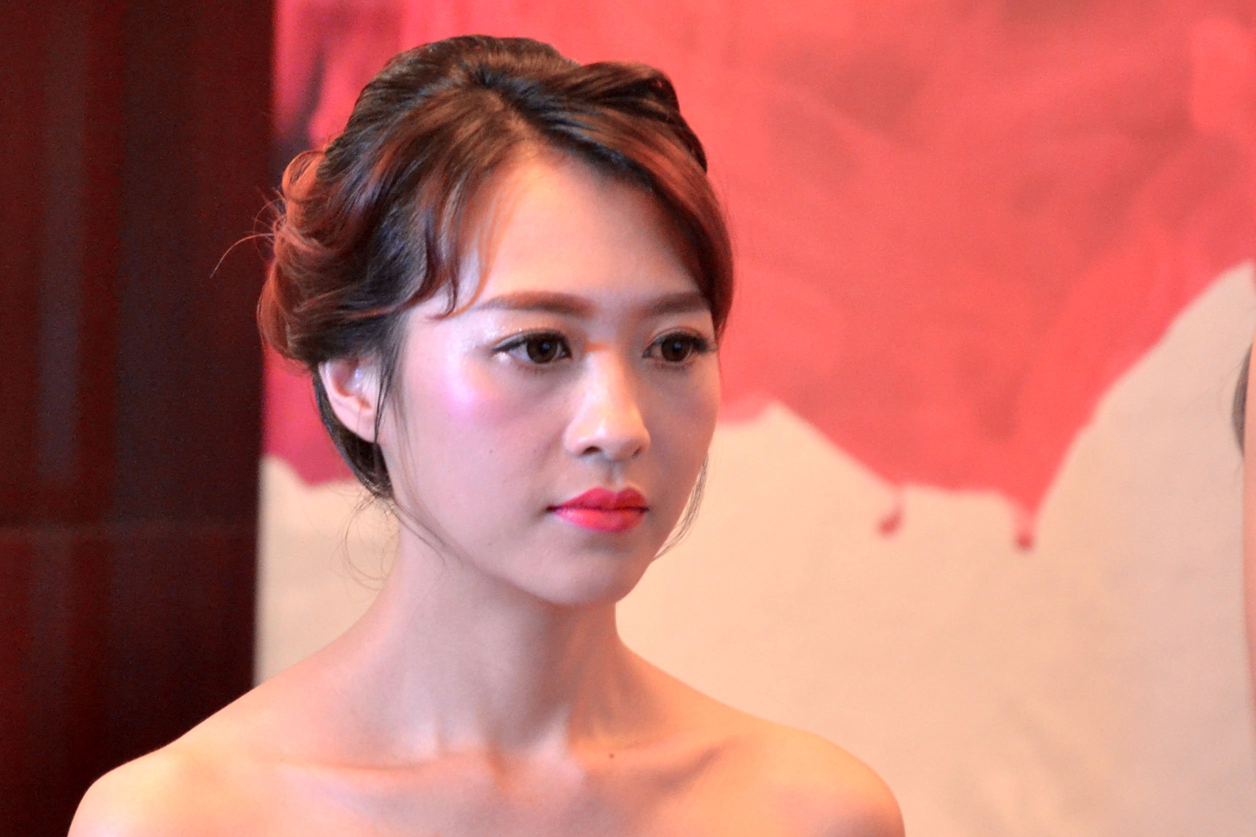 虽然还没有做造型,但化了妆的模特已经初显女神气质