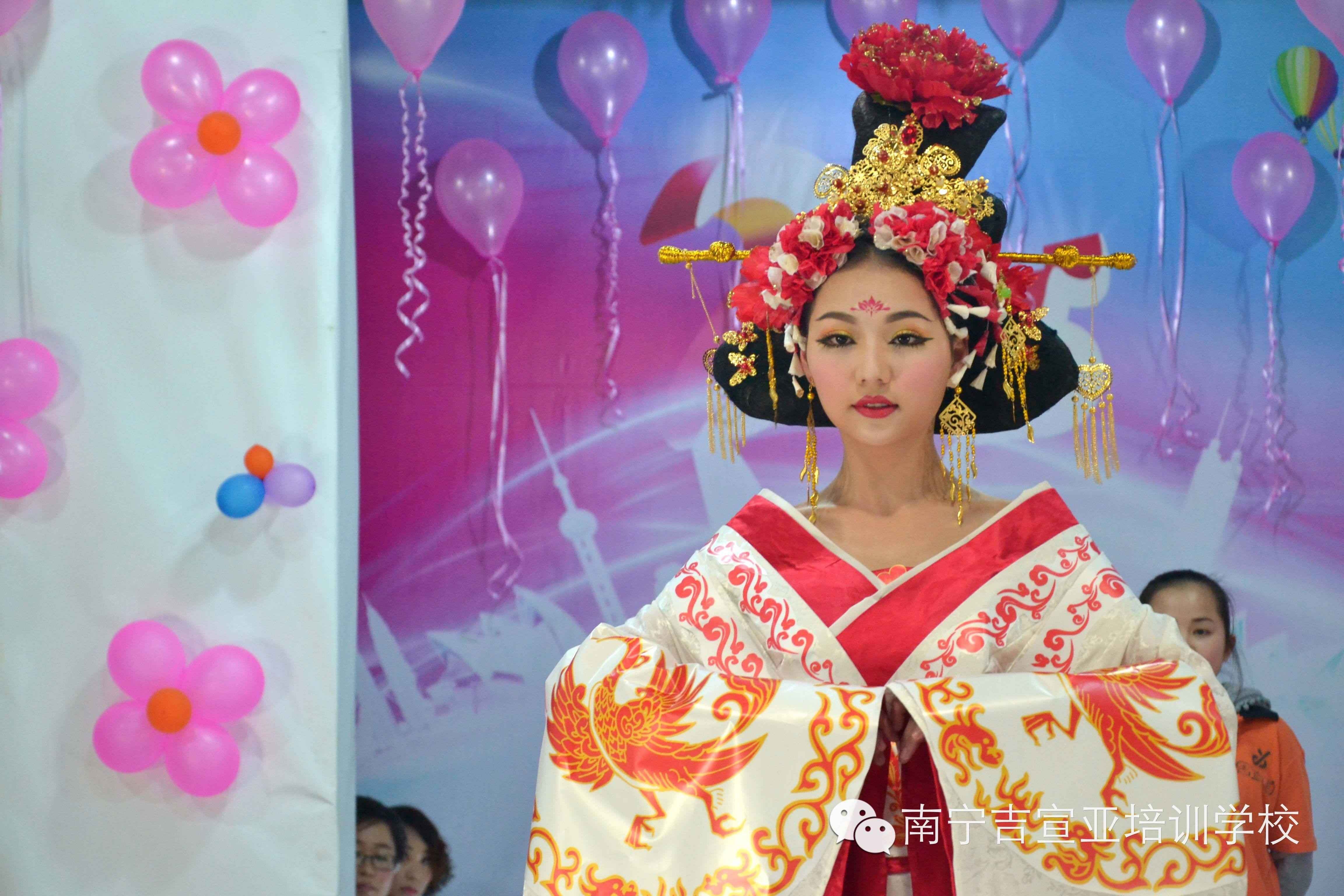 学员卢春梅带来的作品《黑与白》,鱼尾的黑白服饰也让人眼前一亮。学员黄春霞的作品《武则天》结合近来热播剧《武媚娘传奇》的人物造型,妆容精致,美丽而大气。